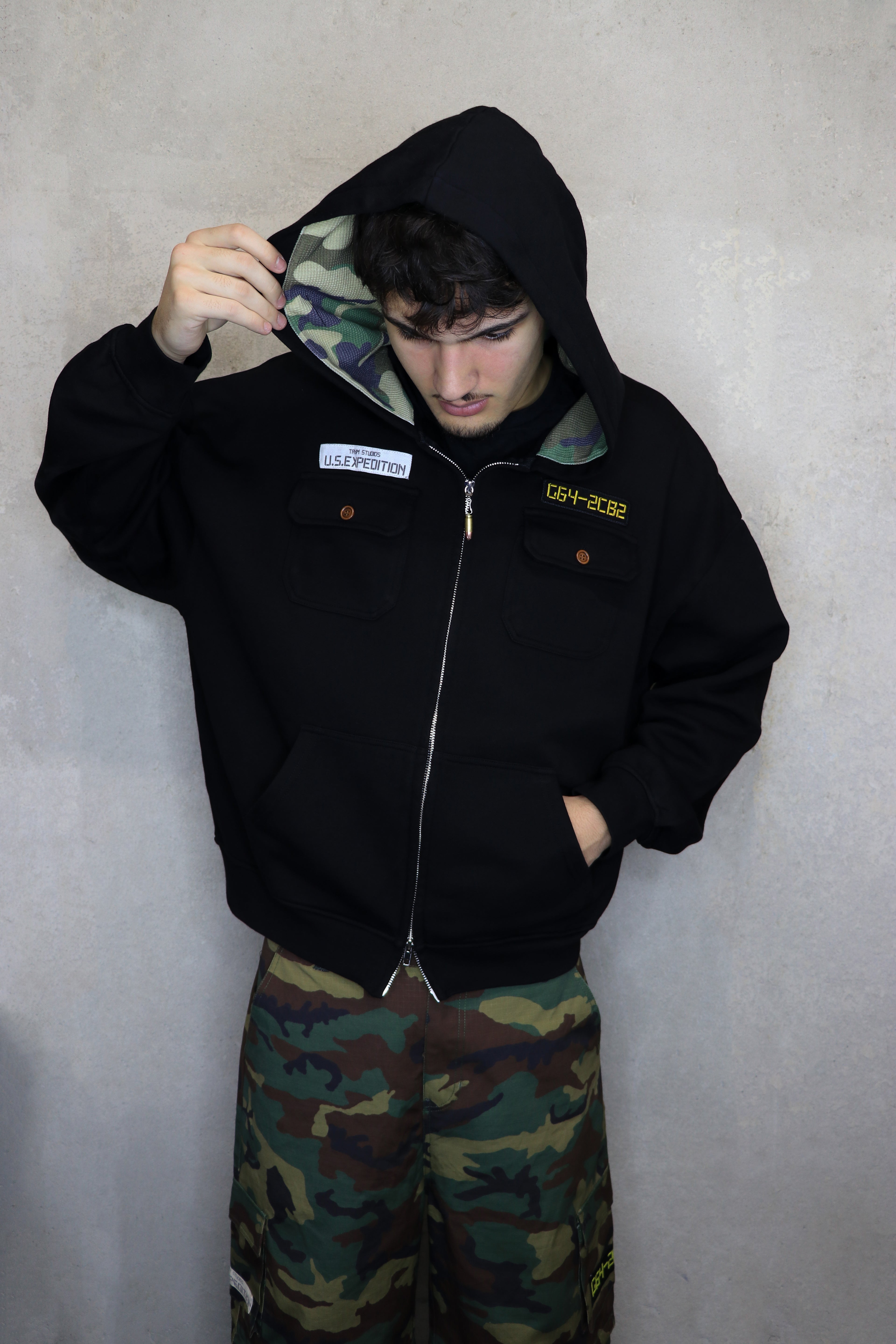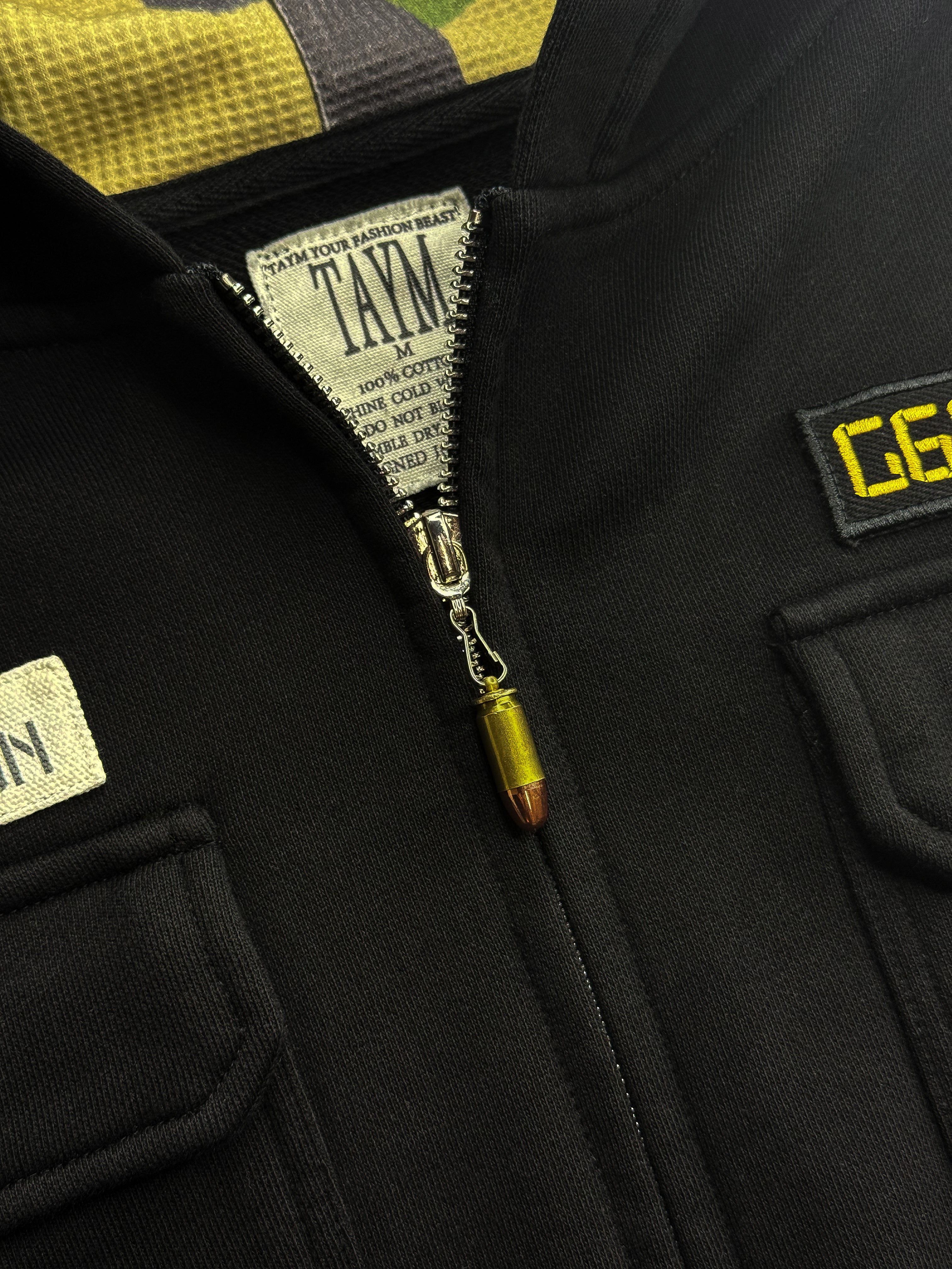 Built for comfort and made to last. This heavyweight hoodie is crafted from ultra-thick 500 GSM cotton and features a waffle-knit lined hood for extra warmth and texture. It has a baggy, relaxed fit that drapes clean for an effortless look. Finished with premium details, including a real metal bullet on the zipper pull tab, this hoodie combines rugged design with everyday wearability.