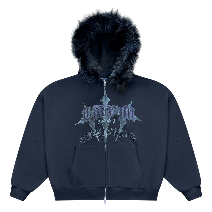 The Taym Baggy Zip-Up Hoodie fuses heavyweight 450 GSM cotton fleece and an oversized silhouette for unmatched warmth and street-ready style. Plush faux-fur trim on the hood adds a luxury edge, while the full-length metal zipper, deep kangaroo pockets and bold front graphic dial up the attitude.