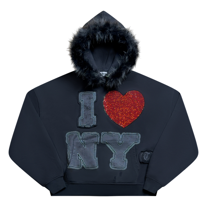 Crafted from heavyweight 450 GSM 100% cotton with an oversized fit, removable faux-fur hood, and a sparkling rhinestone heart, this premium hoodie elevates any outfit with high-fashion comfort and statement style.